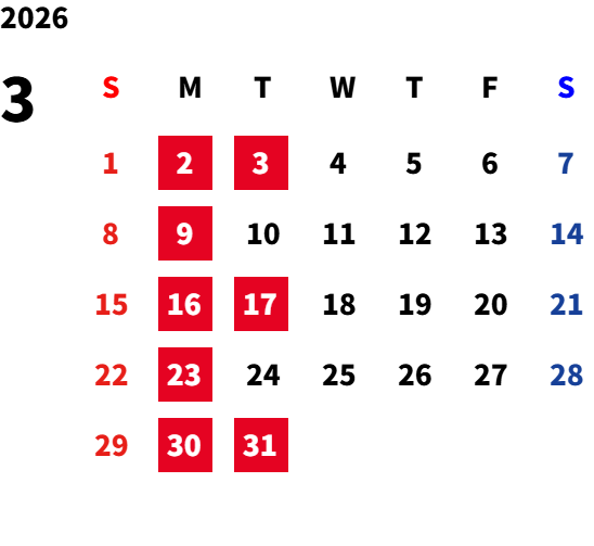 ※毎週月曜、第1・第3・第5火曜が定休となりますが、不規則でお休みとなる場合がございますので、詳しくは営業日カレンダーをご参照ください。